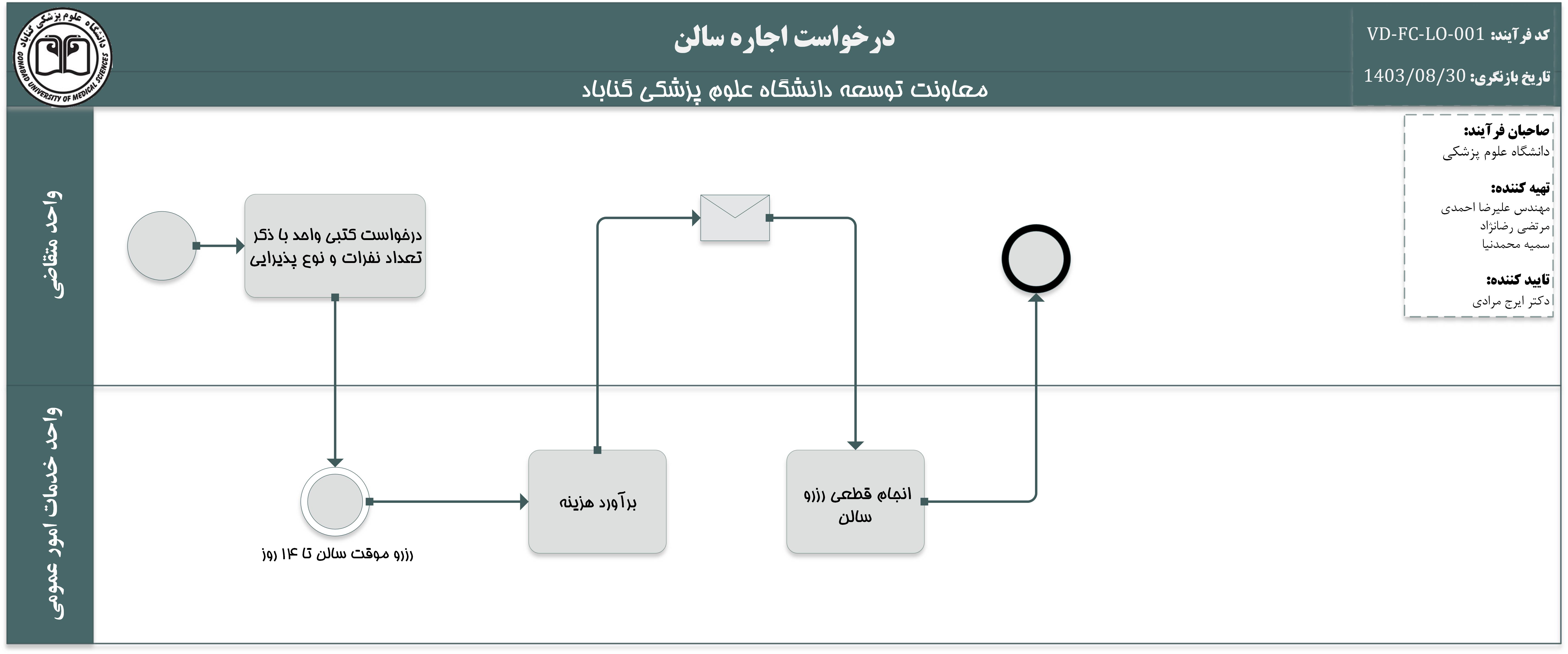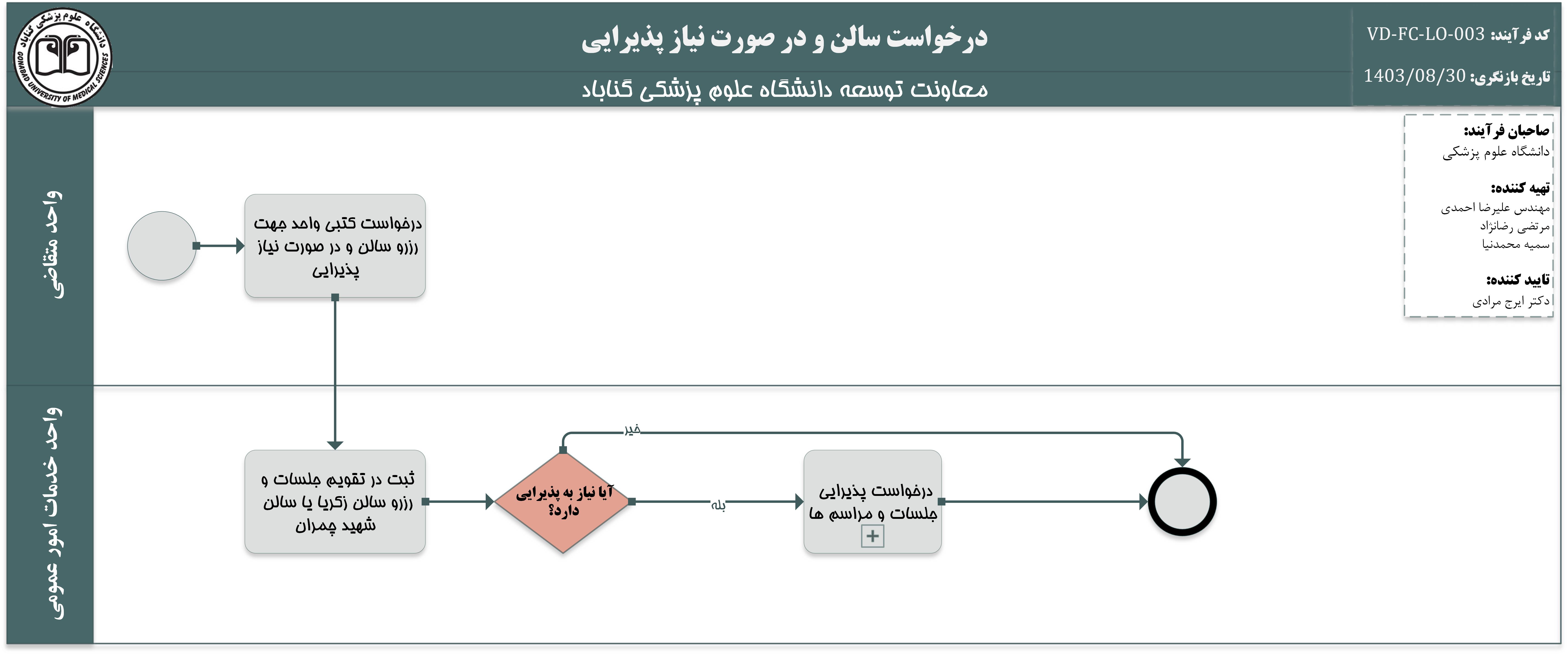 درخواست سالن و در صورت نیاز پذیرایی